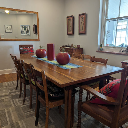 Gather around the table in our welcoming dining room. Whether it’s a hearty breakfast, a shared meal, or a relaxed evening indoors, this space sets the scene for good food and warm conversation.